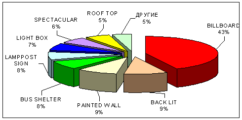 Диаграмма 1 - распределение рекламных бюджетов по типам конструкций в 2001 г.