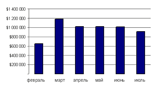 Диаграмма 1 - Динамика распределения рекламных бюджетов в феврале - июле 2002 года